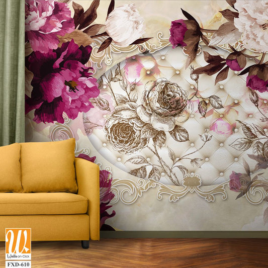 3D Vintage Peonies and Pearls Wall Mural Wallpaper [WP-FXD-610]