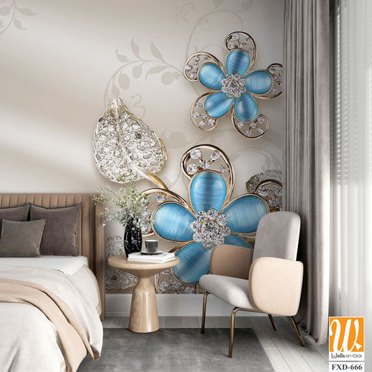 Blue gemstone flowers arrangement Wallpaper [WP-FXD-666]
