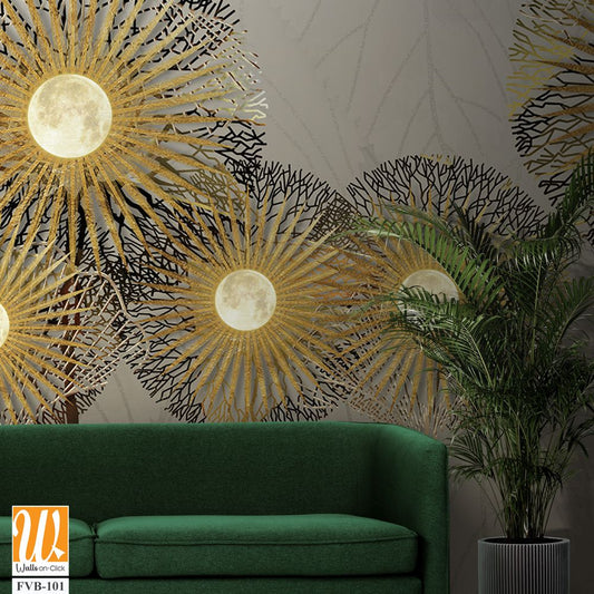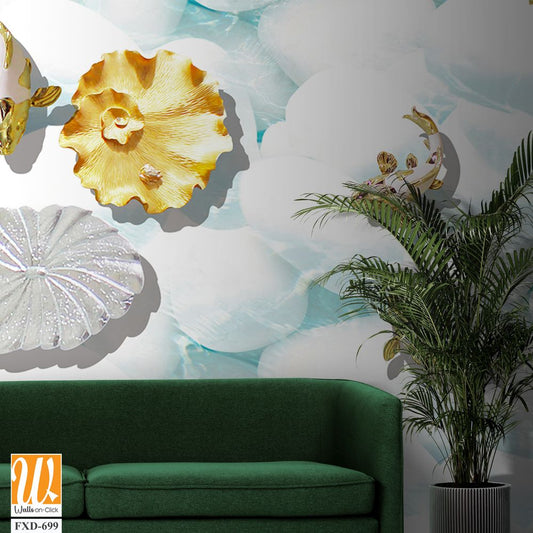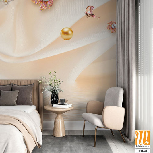 3D wallpaper with golden and silver pearls [WP-FVB-411]
