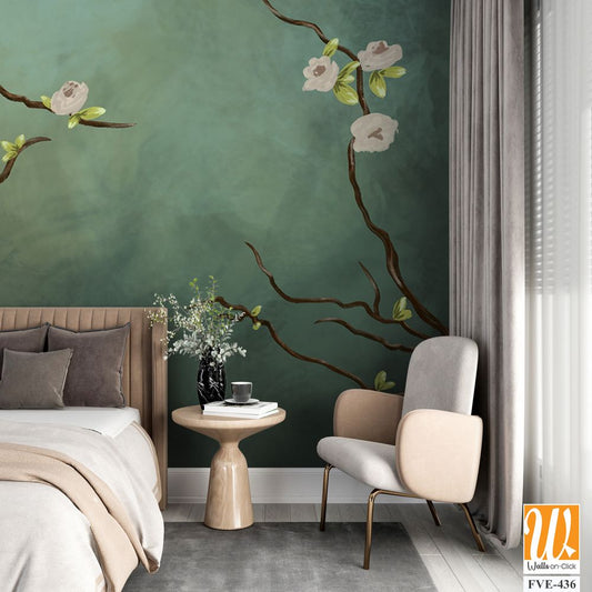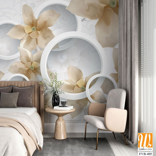 3D wall mural, with beige and cream-colored flowers [WP-FVB-405]