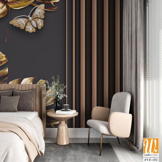 3d wallpaper, golden monstera leaves [WP-FVF-152]
