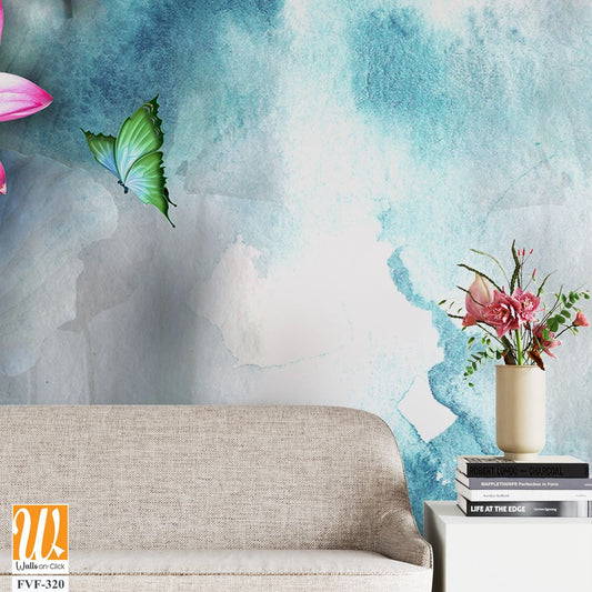 Beautiful peacock flowers and waterfalls background, [WP-FVH-239]
