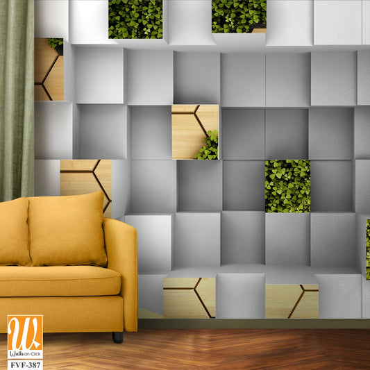 Modern white and grey wall with wooden cubes [WP-FVF-387]