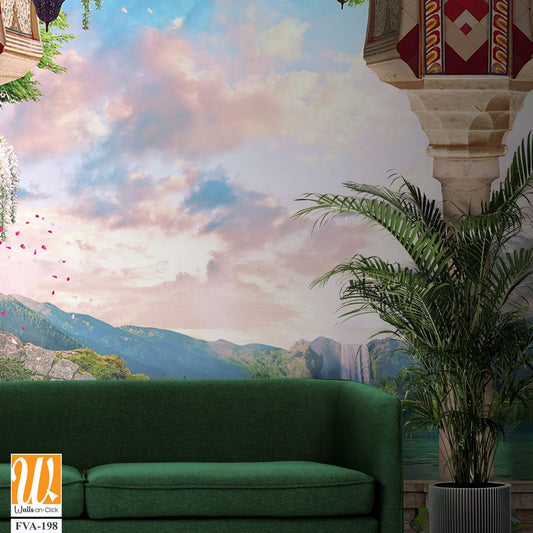 3D wallpaper, fantasy landscape with a waterfall [WP-FVD-269]