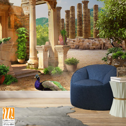 Beautiful Roman ruins garden with peacocks [WP-FVA-484]