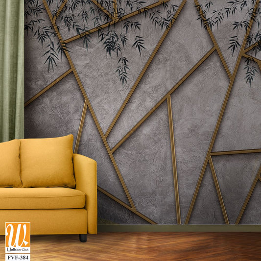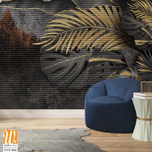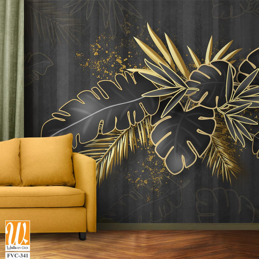 3D luxury wallpaper with black and gold palm leaves [WP-FVF-066]