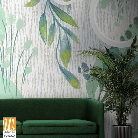Watercolor, greenery foliage pattern with white circles [WP-FVD-265]