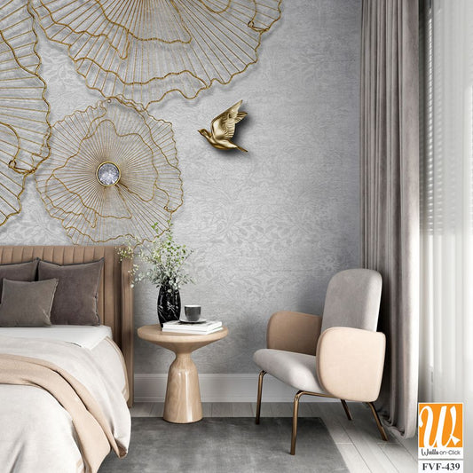 3D wallpaper with gold and silver flowers [WP-FVJ-042]