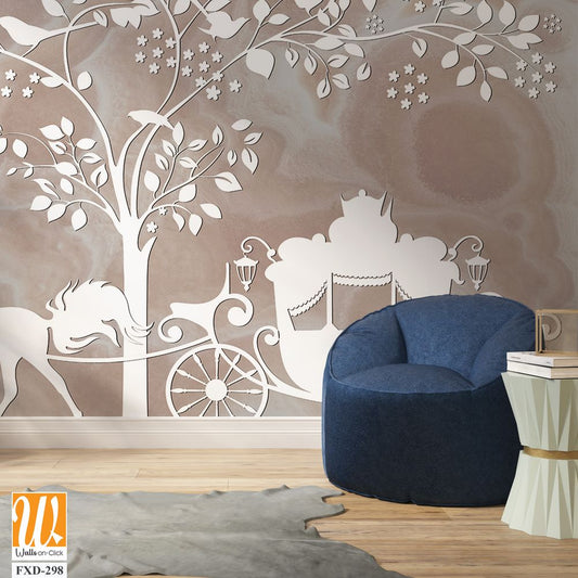 A wedding horse and carriage under the tree of life Wallpaper [WP-FXD-298]