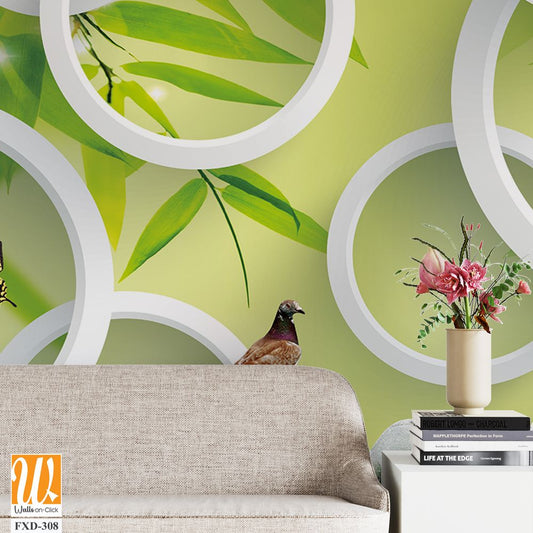 3D wall mural, bamboo forest with white circles Wallpaper [WP-FXD-308]