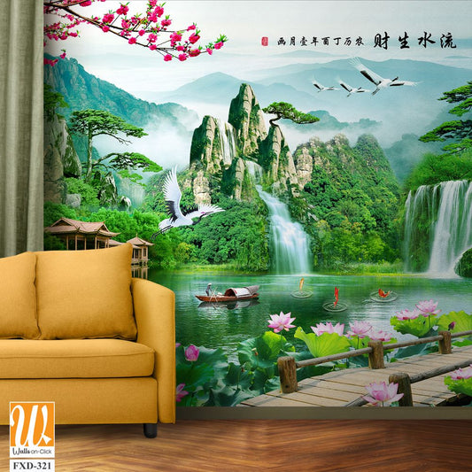3d landscape painting with waterfalls Wallpaper [WP-FXD-321]