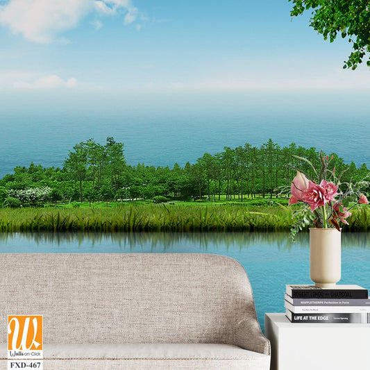 Mural depicting an exotic island with lush greenery Wallpaper [WP-FXD-517]