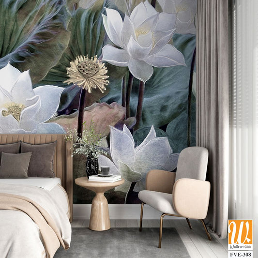 Lotus garden with large leaves Wallpaper [WP-FVE-308]