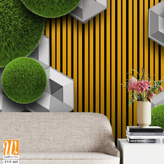 3D wallpaper featuring grass-covered spheres [WP-FVF-465]