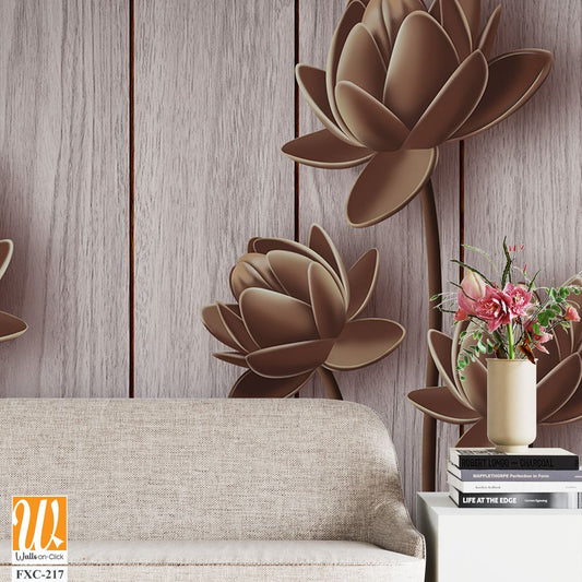 3D brown wooden lotus flowers Wallpaper [WP-FXC-217]