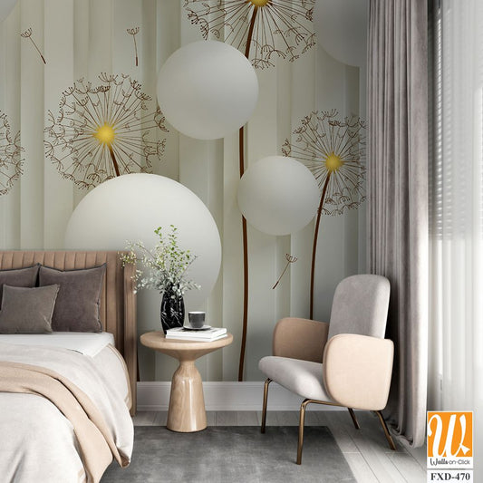 3D white spheres, dandelion-like shapes Wallpaper [WP-FXD-470]