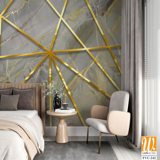A geometric pattern of gold lines on a grey marble Wallpaper [WP-FVC-242]
