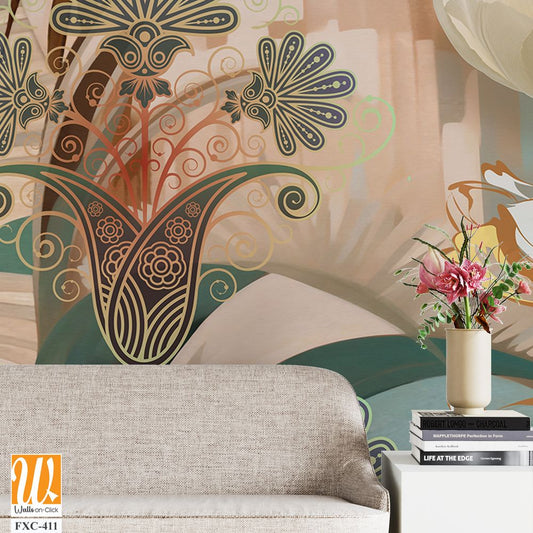 Abstract floral pattern with hand-drawn shapes Wallpaper [WP-FVC-194]