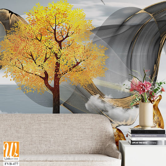 3D golden deer and trees Wallpaper [WP-FVB-477]