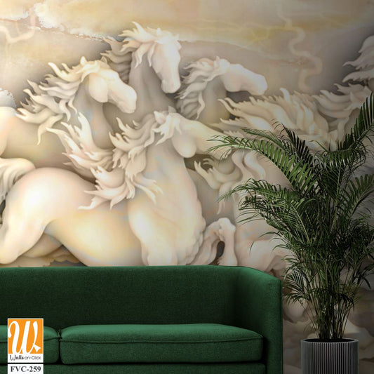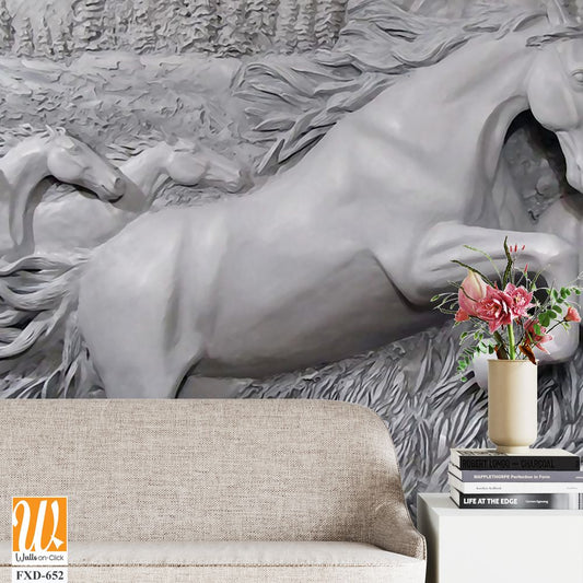 3D relief, 7 horses running in the mountains Wallpaper [WP-FXD-652]