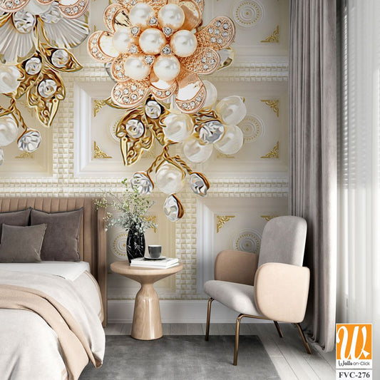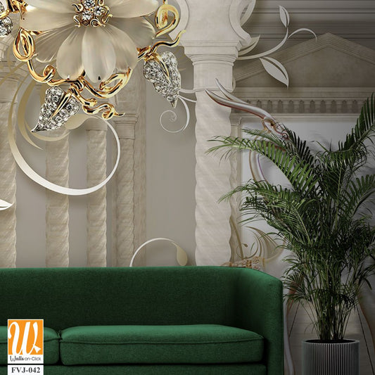 3D wallpaper with gold and silver flowers [WP-FVJ-042]