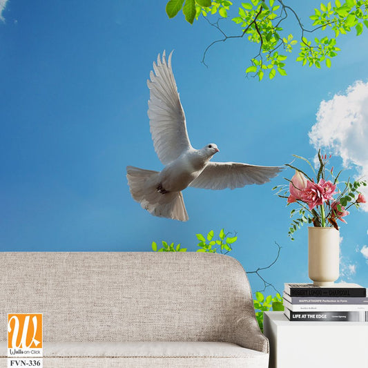 3D wallpaper of a white dove flying in the blue sky [WP-FVN-336]