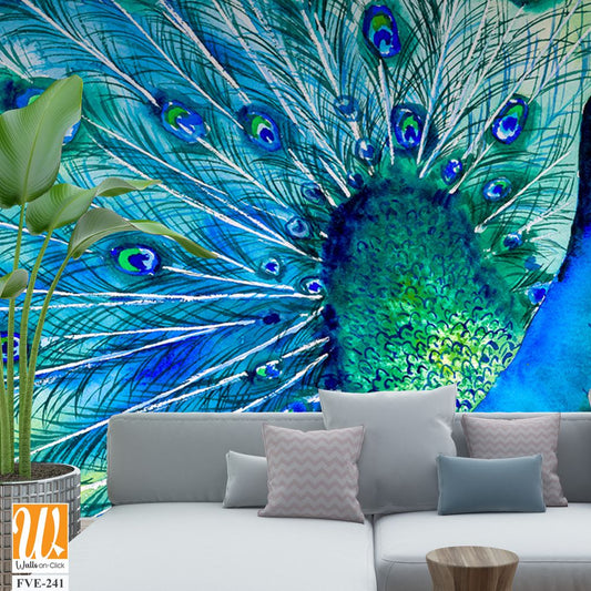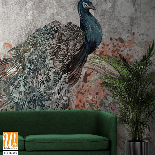 Art painted peacock sitting on a branch among texture background photo wallpaper [WP-FXH-369]