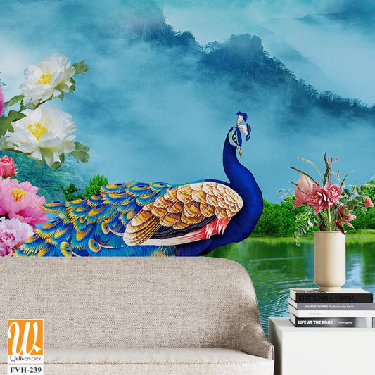 Beautiful peacock flowers and waterfalls background, [WP-FVH-239]
