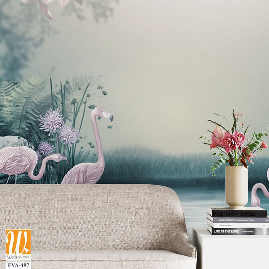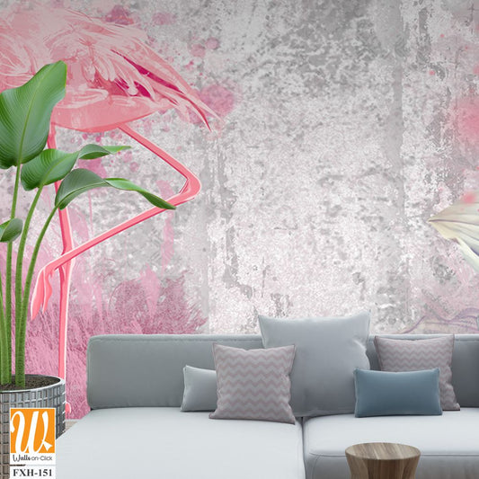 Flamingos on a texture photo for your room. Photo wallpapers that fit a light interior [WP-FXH-151]