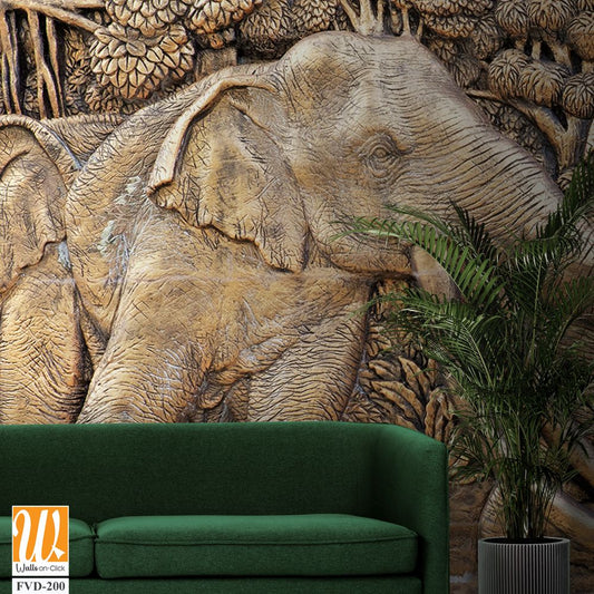 Detailed carving depicting a herd of elephants [WP-FVD-200]