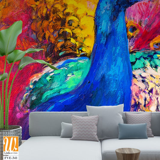 Colorful Peacock, oil painting, colorful background [WP-FVE-341]
