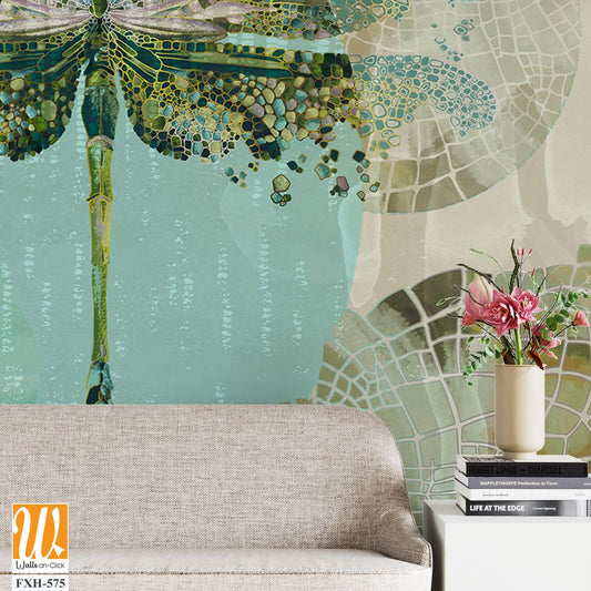 Dragonflies that fly on canvas texture background with watercolor highlights photo wallpaper [WP-FXH-575]