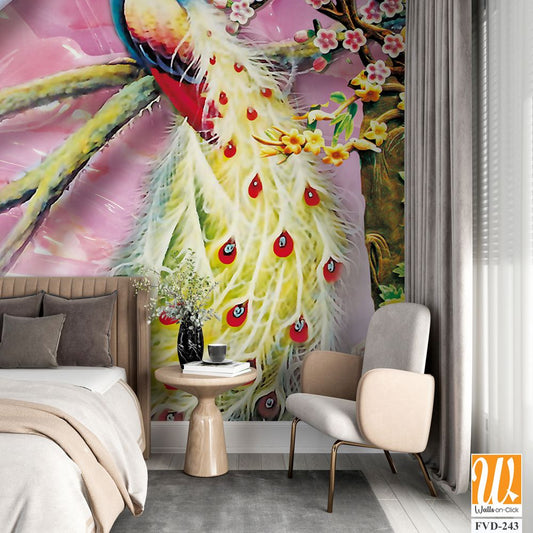 The white and colorful peacock Wallpaper [WP-FVD-243]