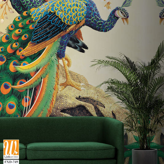 Traditional decorative pattern of two peacocks Wallpaper [WP-FXD-749]