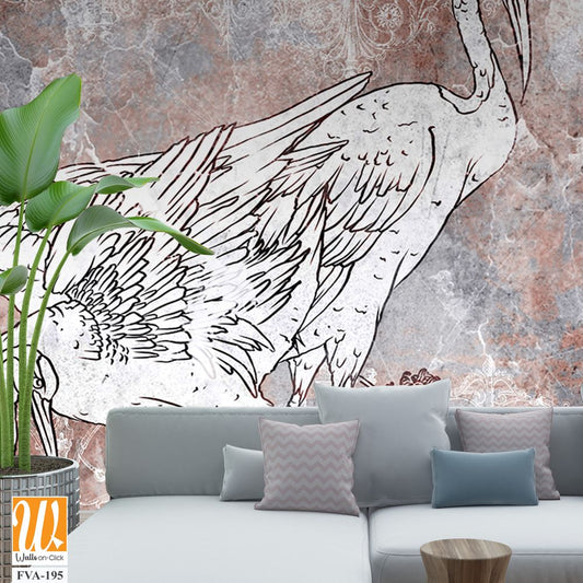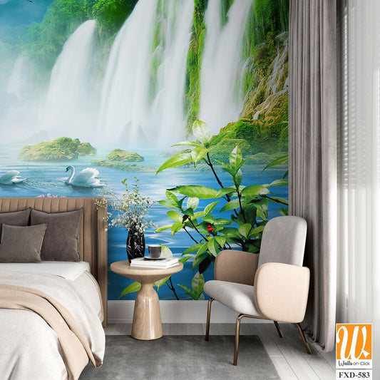 Two peacocks among beautiful waterfalls Wallpaper [WP-FXD-583]