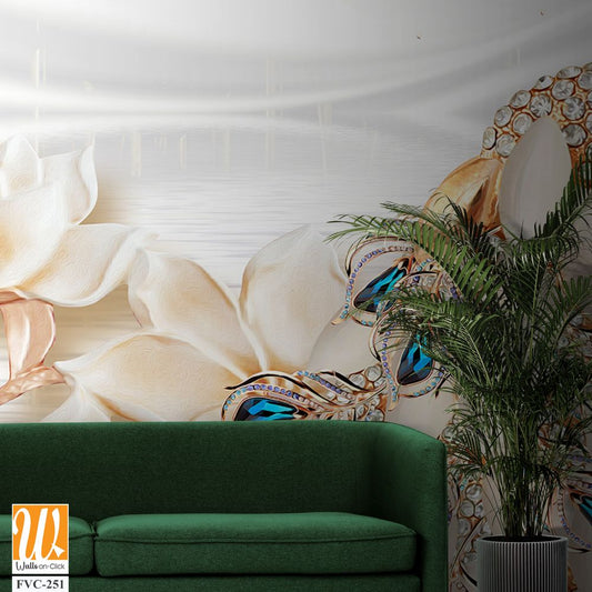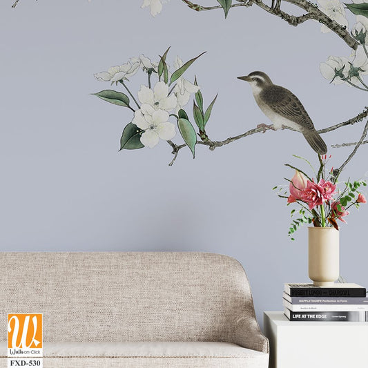 White flowers and branches with birds flying Wallpaper [WP-FXD-530]