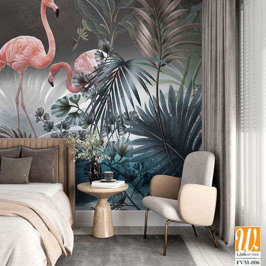 Watercolor painting of tropical plants and flamingos [WP-FVM-006]