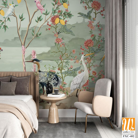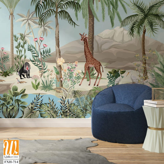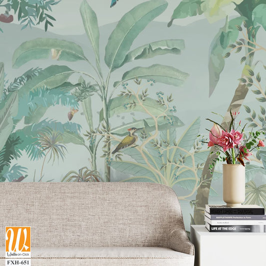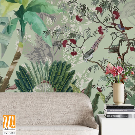 Wallpaper - Wall Mural - Tropical Plant, Birds and animal. [WP-FXH-681]