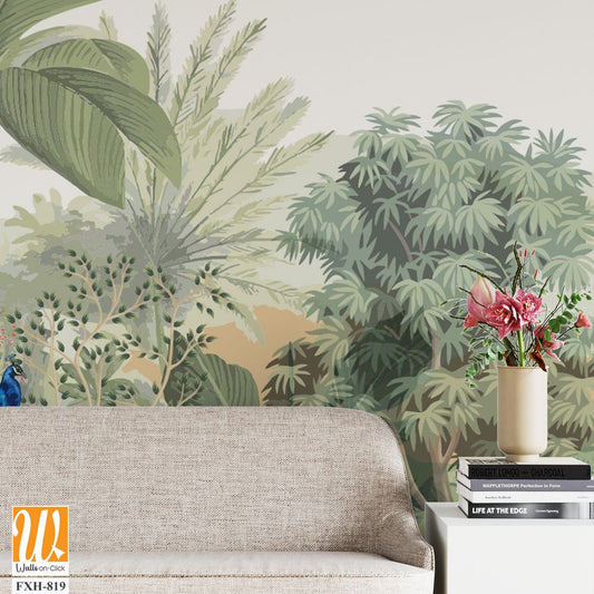 Vintage old forest jungle illustrations. Exotic green jungle background and wallpaper. Forrest [WP-FXH-819]