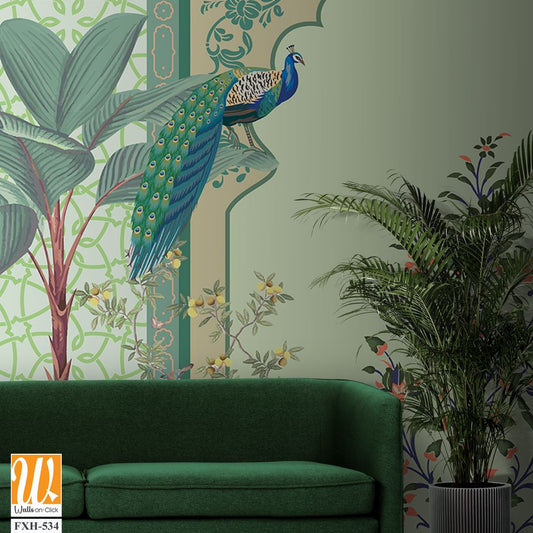 Traditional Mughal Background Design, Peacock, Tree, Seamless, Mughal Arch. [WP-FXH-665]