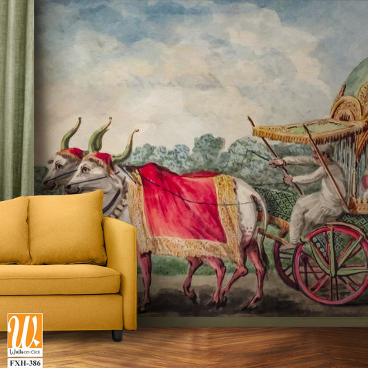 British Raj East India period Bull Cart in vector illustration [WP-FXH-386]