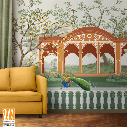 Chinoiseries peacock, Birds Palace garden royal Wallpaper [WP-FXH-538]