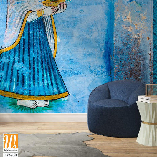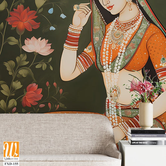 Hand-painted Indian mural of an elegant woman Wallpaper [WP-FVA-190]