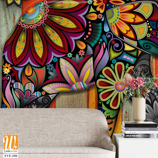 Vibrant and colorful elephant with intricate patterns [WP-FVF-390]