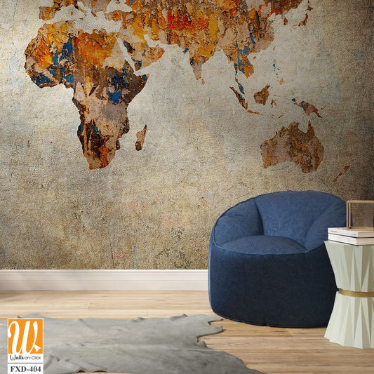 Rustic World Map, Vintage Style, Oil Painting Artwork Wallpaper [WP-FXD-404]