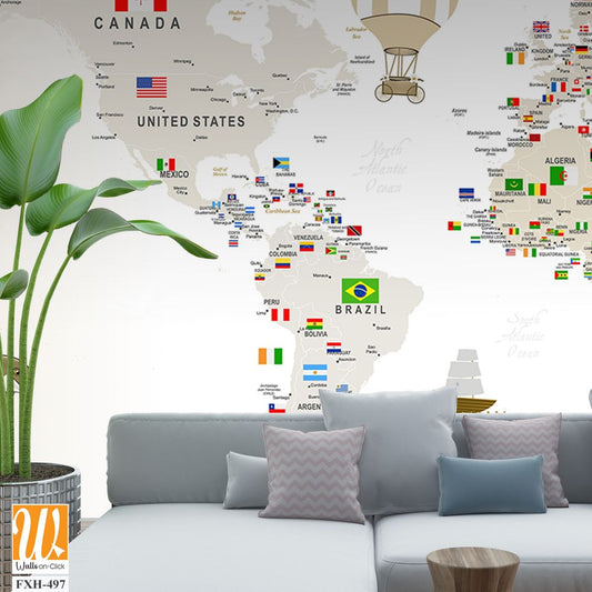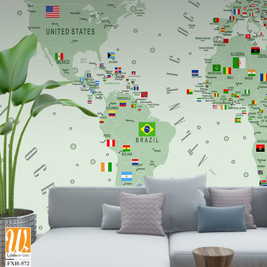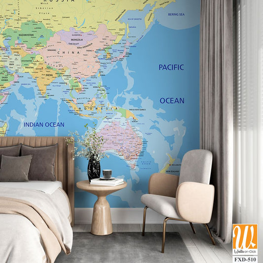 Educational world map wallpaper design for kids rooms [WP-FXH-329]