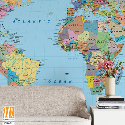 Detailed map of the world with country borders Wallpaper [WP-FXD-510]