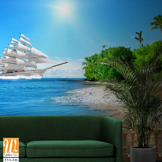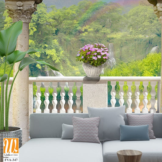 A beautiful view of the sea from an open balcony Wallpaper [WP-FXD-514]