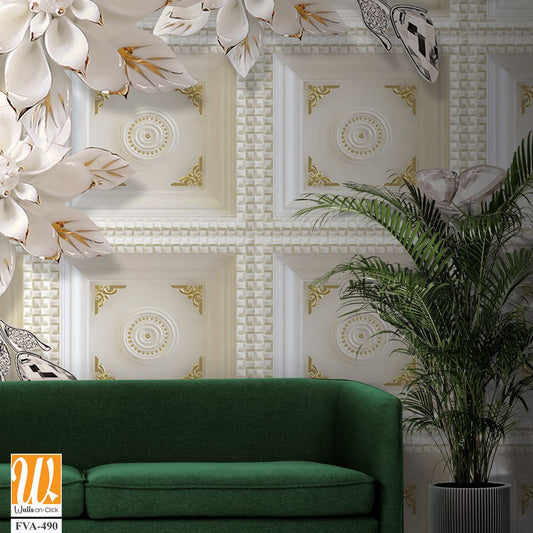 3D wallpaper featuring white flowers as a decorative model [WP-FVA-490]