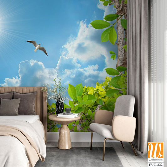 3D frame of blue sky with white clouds Wallpaper [WP-FVC-322]